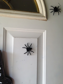 After the glue was all dry and the spiders had cooled down, I placed them onto the front and back or our front door. The rolled up magnets I used are not that strong so if you are wanting to do this project I would suggest going to the craft store and to purchase a good strong set of magnets. These magnets will work for this year but I will probably have to replace them either at the end of the season or before I put them out next year. They were a quick and easy decoration to make that looks Super cute on our front door. Plus the fact that I had all the stuff so it was free doesn't hurt either. :)